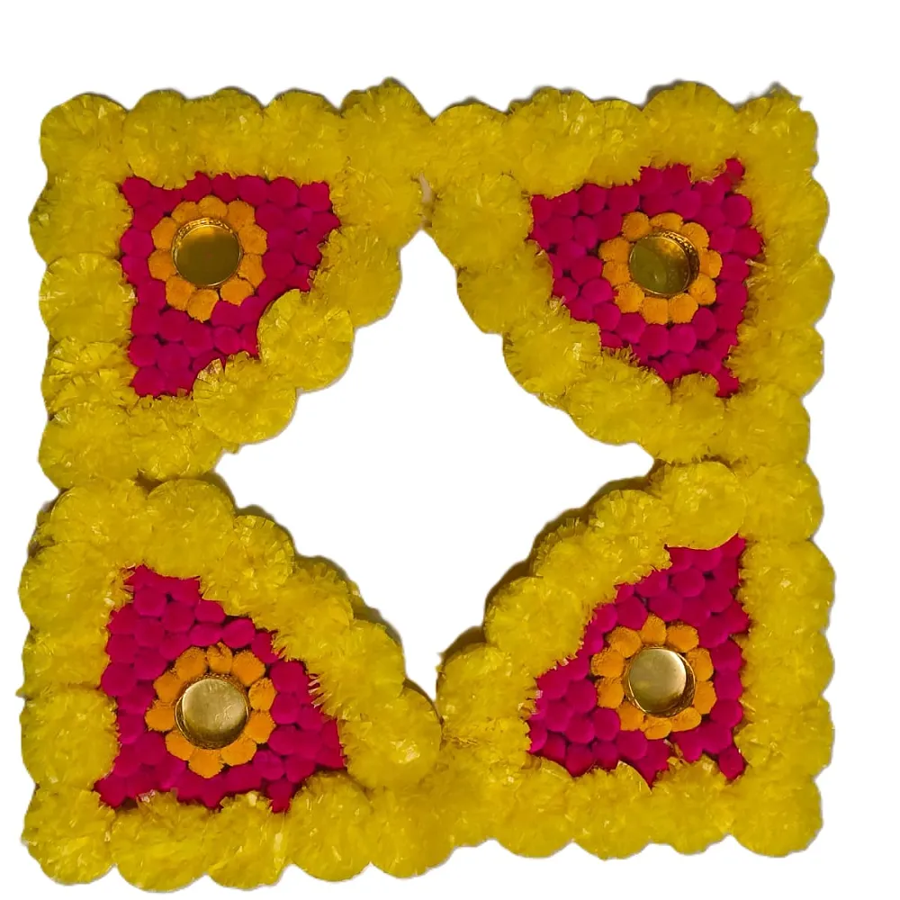 Decorative Corner Rangoli Set of 4 Artificial Flower Pom Pom Rangoli with Candle Holder for Festive Home Décor