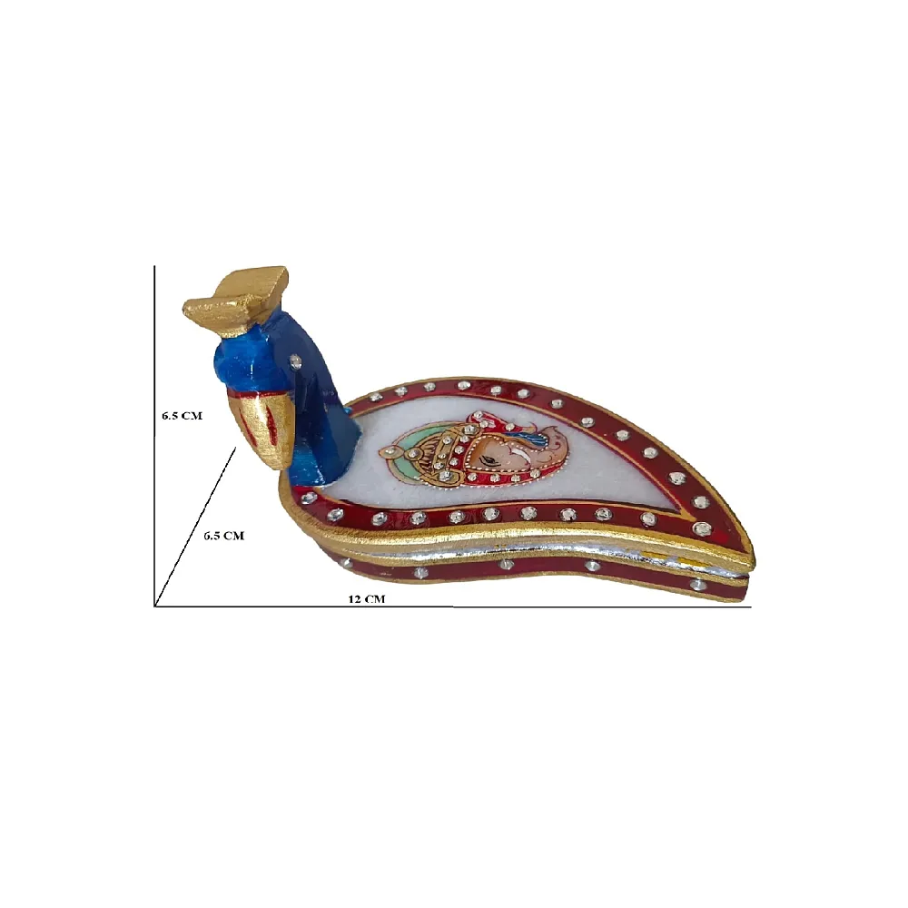 Decorative Marble Peacock Kumkum Chopra Handpainted Akashat Chopra for Mandir & Festivals