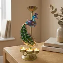 Decorative Peacock Candle Holder Hand Painted Metal Tea Light Stand for Home