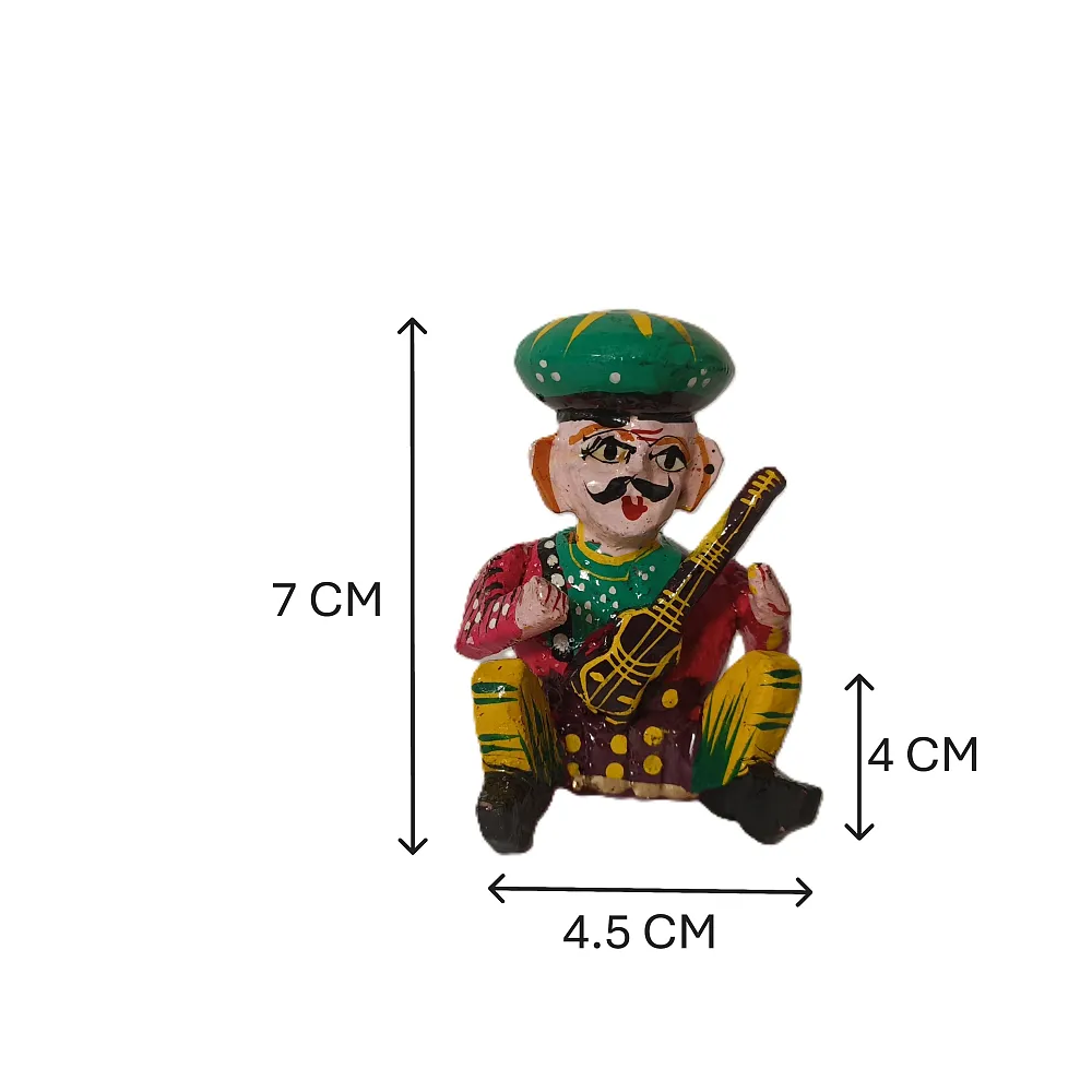 Bring home the charm of Rajasthani folk art with the Rooted Craft Hand Painted Wooden Bawla Musician Set. This beautifully crafted set of 6 miniature musicians captures the vibrant essence of Indian culture. Each piece is hand-carved, hand-painted, and designed to uplift any corner of your home. Each piece measures 7 x 4.5 x 4 cm, making it ideal for small décor corners without occupying much space.