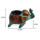 Hand Painted Wooden Elephant Tea Light Holder – Blue Multicolour