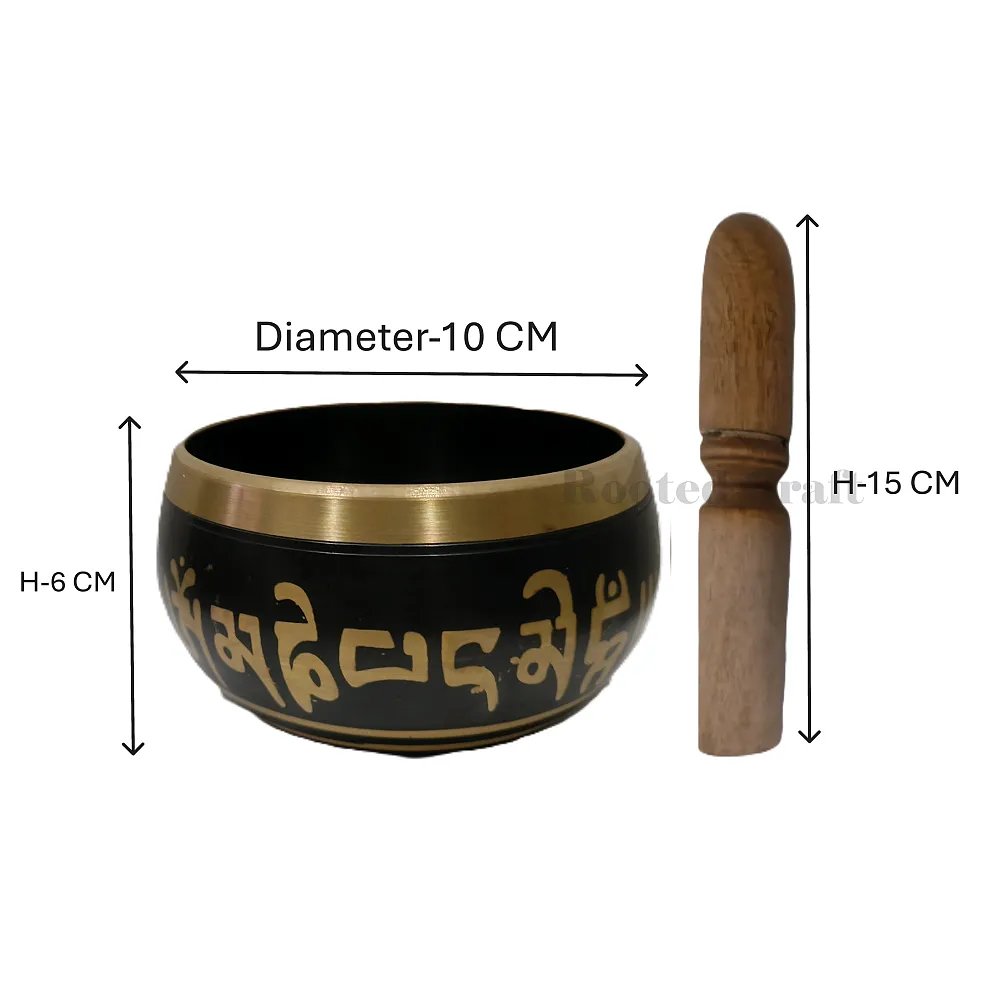 Handcrafted black meditation & yoga singing bowl made from premium metal and brass. Designed for deep, soothing vibrations ideal for meditation, yoga, chakra healing, reiki and sound therapy. Produces rich, calming tones that reduce stress and enhance focus. Compact 10×6 cm size with wooden mallet included—perfect for home, studio, travel and daily spiritual practice.