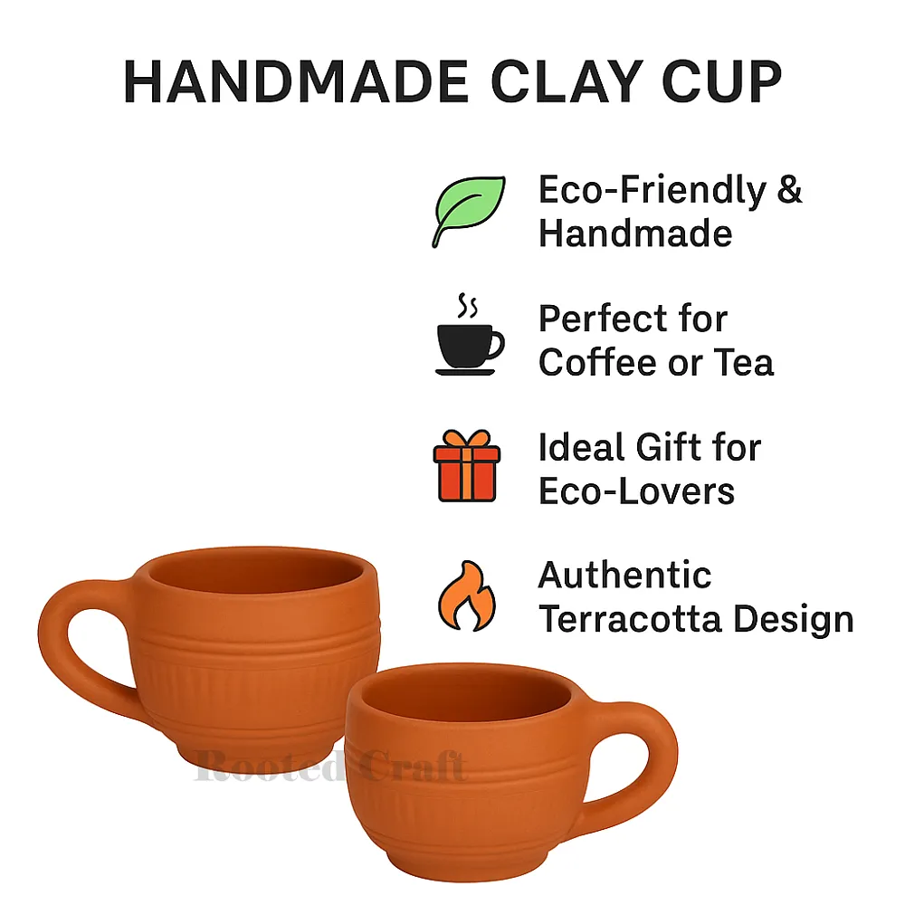 Experience tea the traditional Indian way with the Rooted Craft Handcrafted Mitti Clay Tea Cups. Made from pure natural clay, these cups infuse your tea with the rich earthy aroma that only real mitti can deliver. Their vintage kulhad charm combined with a modern handle makes them perfect for everyday tea and coffee lovers.
