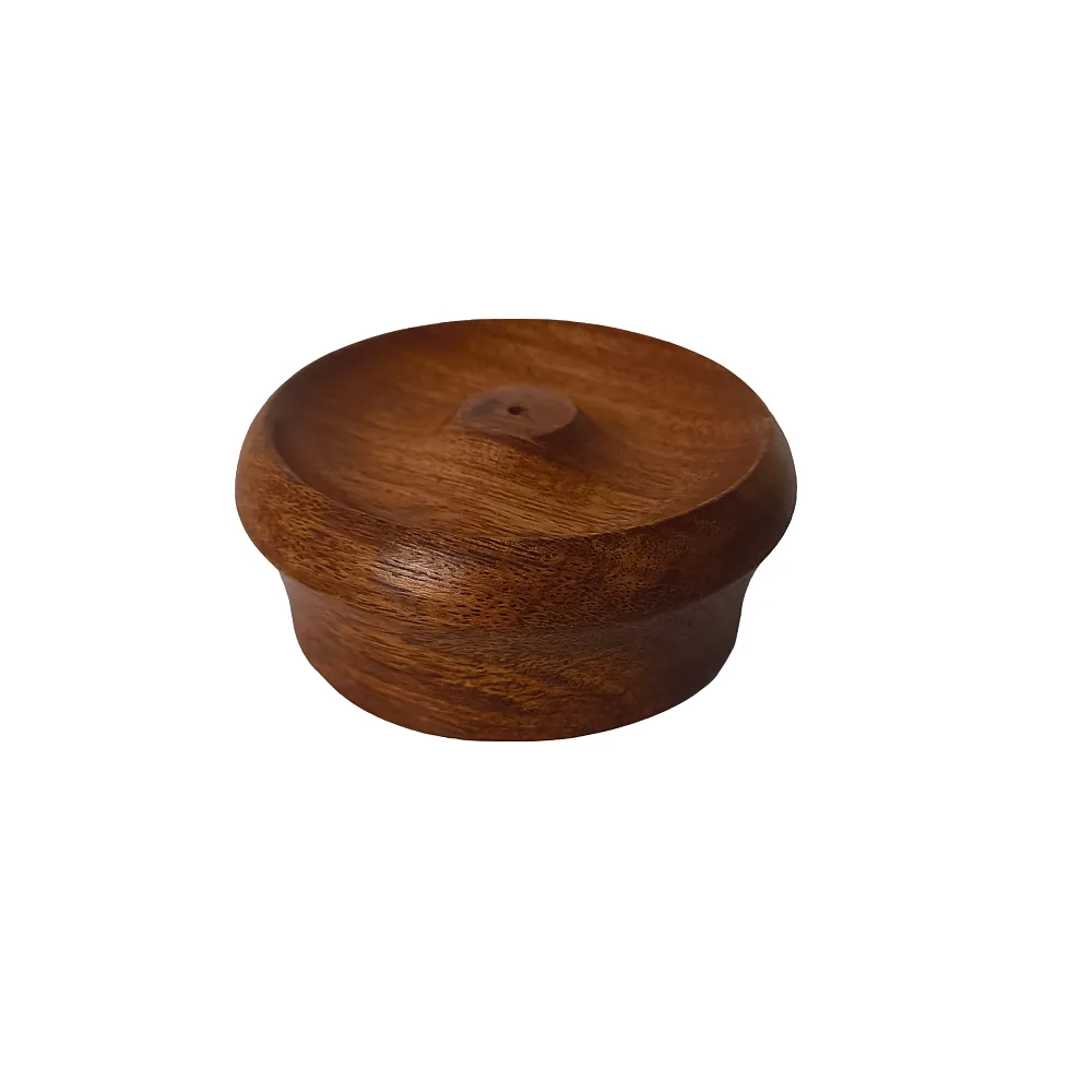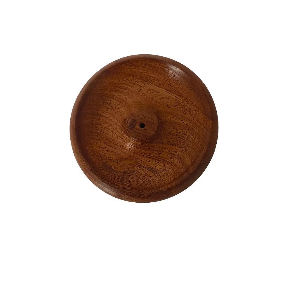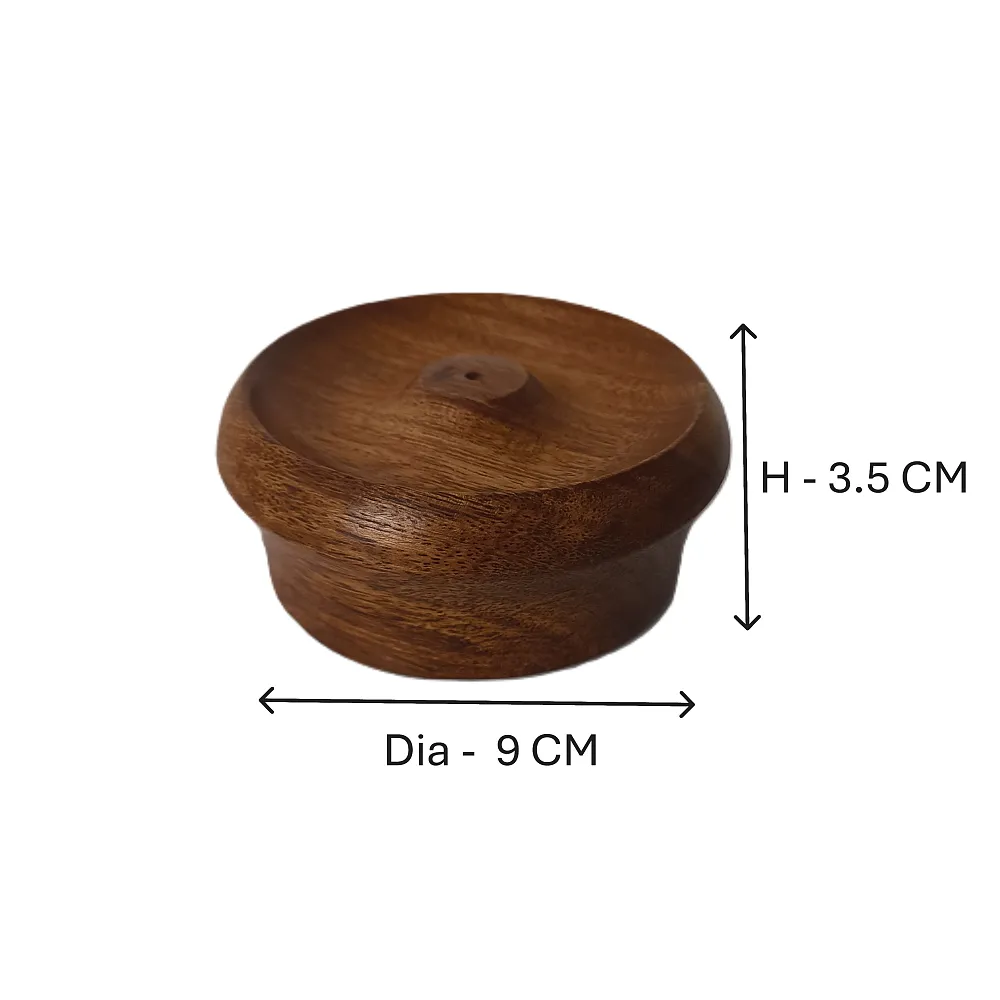 Enhance your spiritual space with this handcrafted Wooden Incense Holder (Diameter 9 cm, Height 3.5 cm). Designed in a compact round bowl shape, it securely holds agarbatti while neatly collecting ash. Made from premium quality wood with a smooth brown finish, it is perfect for home mandir, pooja room, meditation corner, or yoga space. Ideal for daily rituals, festive decor, Diwali gifting, and traditional puja samagri collections.