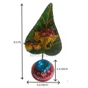 Hand-painted metal Pan Ganesh T-Light Holder featuring a vibrant paan leaf design with Ganesha artwork. Perfect for Diwali décor, pooja rooms, living rooms and gifting. Includes a sturdy base and T-light holder that adds a warm spiritual glow. A beautiful multicolour handcrafted décor piece. Size: 9.5 inch height, 5.5 inch base diameter.