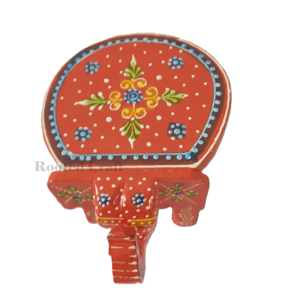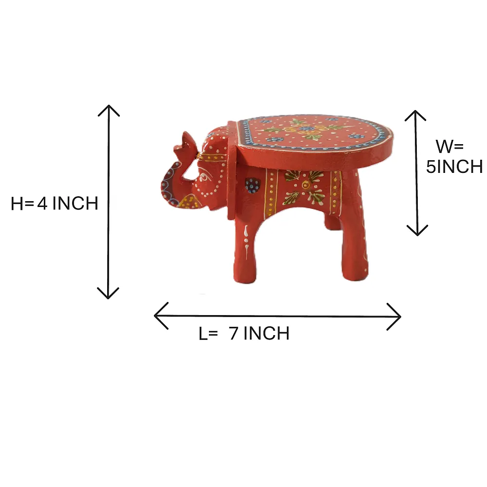 Handcrafted wooden handpainted elephant stool in vibrant orange, perfect for home décor, pooja room, plant stand and kids' room styling. Made by skilled artists using traditional Rajasthani designs. Compact size 7×4×5 inch fits beautifully in any corner. A unique decorative accent and ideal gift option for festivals and housewarming.